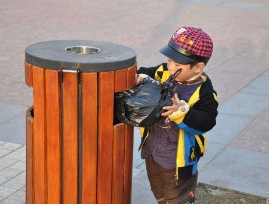 | 베이징 시내의 한 어린이가 음식 쓰레기를 버리고 있다. 음식 쓰레기의 증가는 앞으로 더욱 심각한 사회 문제가 될 것으로 보인다. |