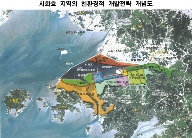 | 시화호 개발전략도. 붉은색이 이번 착공예정인 MTV부지. |