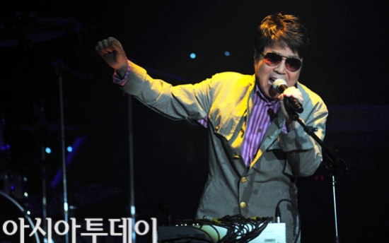 가수 조용필이 23일 오후 서울 송파구 방이동 올림픽공원 올림픽홀에서 열린 19집 앨범 '헬로(Hello)' 발매기념 프리미어 쇼케이스를 갖고 있다.