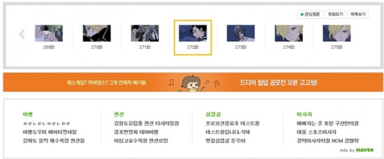 | 네이버 웹툰 서비스의 작품 하단에 노출된 텍스트형 광고./제공=NHN |