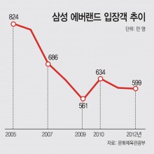 테마파크 부문 부동의 1위였던 에버랜드는 최근 2년 새 영업이익 급감과 입장객 수 감소 등으로 종합 레저시설 사업에서 내리막길을 걷고 있다. 키즈카페와 대형 쇼핑몰, 지방자치단체 행사 등 대체재가 늘고 있는데다 롯데월드 등 경쟁업체와 가격 경쟁이 심화됐기 때문이다.