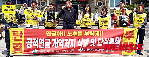 이날 전공노는 "공무원연금 지급률을 1.70%, 기여율을 9.0%로 바꾸는 실무기구 합의안이나 기타 어떤 안에 대해 공무원노조는 합의한 적이 없다"며 "국회연금특위에 올라온 개악안을 수용할 수 없다"고 주장했다.