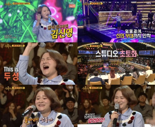 11일 방송된 SBS ‘보컬 전쟁: 신의 목소리’에는 김신영이 도전자로 깜짝 등장했다.