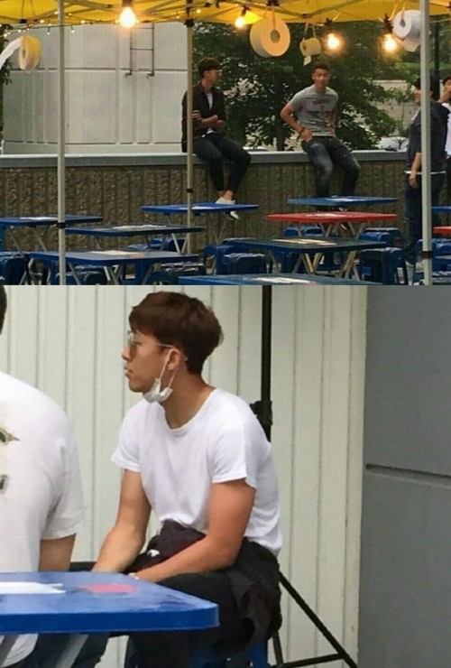 공개된 사진 속 손흥민은 FC 레드불 잘츠부르크 소속 황희찬 선수와 함께 누군가를 기다리는 듯 자리를 지키고 있다. 특히 손흥민이 있던 곳은 무용학과 주점으로 알려져 네티즌들의 궁금증을 자아냈다.
