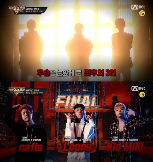9일 방송될 엠넷 '쇼미너머니777'는 생방송으로 펼쳐지는 파이널 무대가 마련됐다. 역대 최고의 경쟁률을 뚫고 올라온 '쇼미더머니777'의 TOP3 나플라, 루피, 키드밀리가 최고의 무대를 선사할 전망이다. 방송을 앞두고 공개된 세 사람의 인터뷰에는 남다른 각오가 담겨 있어 자신의 모든 것을 쏟아낸 파이널 무대에 대한 기대감을 높이고 있는 상황이다.
