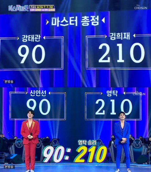 마스터 투표 결과 210대 90으로 120점 차로 영탁이 승리했다.