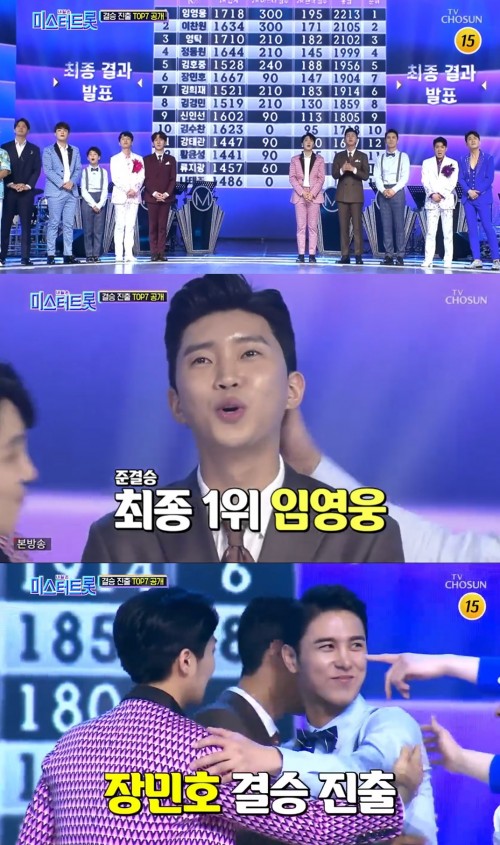 2위는 이찬원, 3위는 영탁, 4위는 정동원, 5위는 김호중, 6위는 김희재가 올랐다. 장민호는 7위에 올라 결승에 진출하게 됐다.