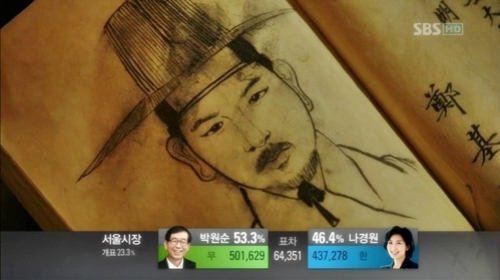26일 방송된 ‘뿌리깊은 나무’ 7회에서 세종(한석규)은 땅굴에 적힌 ‘밀본 제1대 본원 정도전’이라는 글귀를 접하고는 밀본에 대한 정체를 더욱 확실하게 알게 됐다.