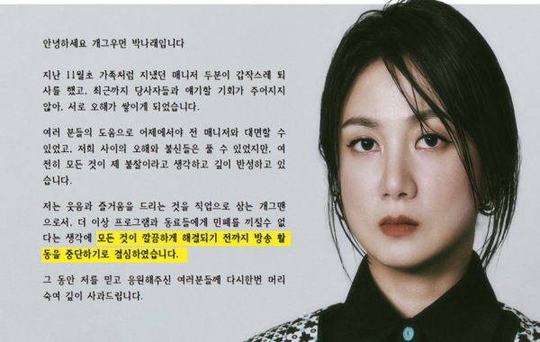 박나래 주사 이모, 의사가운 올리며 "가십거리 만들지 말라"