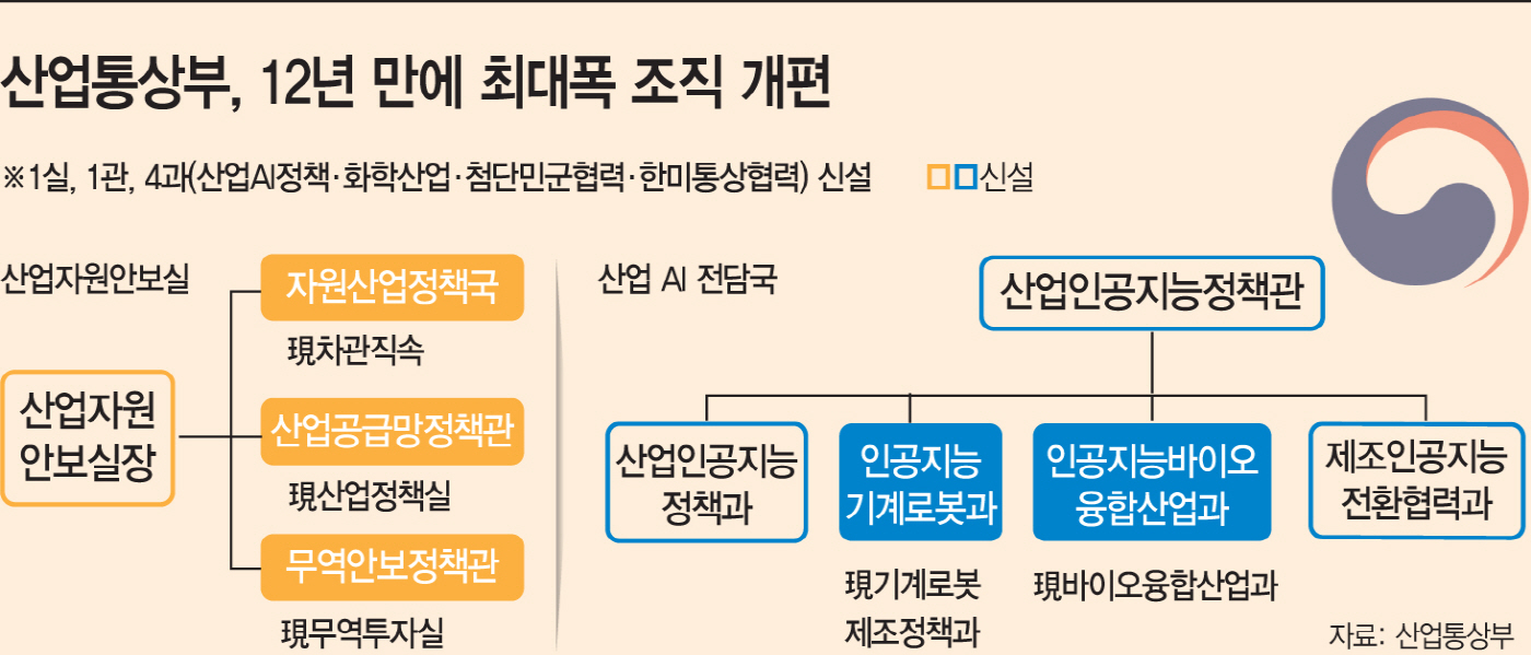 산업통상부가 이번에 단행한 조직 개편은 '몸집 불리기' 외에도 변화한 정책 환경에 맞춰 조직의 대응력을 재정비하는 데 방점이 찍혔다는 평가다. 글로벌 보호무역 기조가 강화되고 인공지능(AI)을 축으로 산업 패러다임이 빠르게 전환되는 상황에서, 산업부가 보다 유연하면서도 일관된 정책 집행 체계를 갖추겠다는 의지를 드러냈다는 분석이다. 이번 개편의 핵심은 크게 세 가지로 압축된다. 경제안보 컨트롤타워 복원·제조업 인공지능(AI) 전환 가속·에너지 분리 기능 이후 정책 공백 최소화다. 가장 눈에 띄는 변화는 '산업자원안보실' 신설이다...
