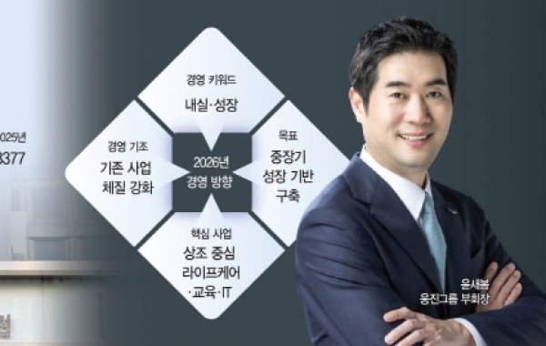 웅진그룹이 올해 경영 전면에 변화를 주며 새 도약에 나선다. 윤석금 회장의 차남인 윤새봄 웅진 대표이사 사장이 최근 부회장으로 승진하며 그룹 경영의 중심에 선 가운데, 인사와 전략 전반에서 변화의 흐름이 뚜렷해지고 있다. 기존 사업의 안정성을 바탕으로 중장기 성장 기반을 재정비하겠다는 그룹의 의지가 경영에 반영되는 모습이다. 18일 웅진그룹에 따르면 회사는 올해 경영 키워드로 '내실 다지기'와 '성장'을 제시했다. 불확실성이 지속되는 경영 환경 속에서 무리한 외형 확대보다는 기존 사업의 체질을 강화하는 한편, 새로운 성장 축을 통..