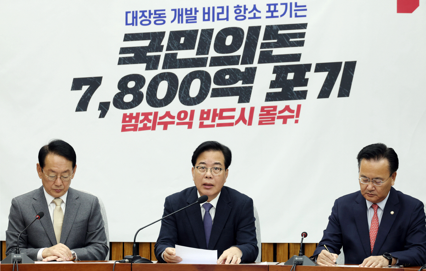 여야가 25일 검찰의 대장동 사건 1심 항소 포기와 관련한 국정조사 합의에 나섰지만 끝내 결론을 내지 못했다. 여야 원내지도부는 국정조사 방식 이견만 확인한 채 회동을 마무리했다. 유상범 국민의힘 원내운영수석부대표는 회동 직후 기자들과 만나 "국민의힘은 국회 차원의 국정조사 특별위원회를 구성해 조사하자는 입장이지만, 민주당은 법제사법위원회에서 국정조사를 진행해야 한다고 주장해 접점을 찾지 못했다"며 "추후 다시 논의하기로 했다"고 말했다. 이어 "국민의힘은 특위 구성에서 민주당의 요구를 상당 부분 수용할 의사가 있었지만, 민주..