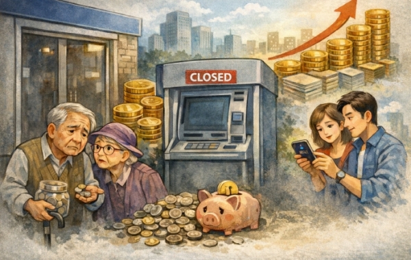 사상 최대 실적을 기록한 은행권에서 오프라인 현금 서비스는 빠르게 축소되고 있다. 영업점과 ATM이 줄고 동전 교환 서비스까지 제한되면서 현금을 사용하는 고령층을 중심으로 불편이 커지고 있다. 특히 현금 수요가 몰리는 명절 기간에 이 같은 불편이 더욱 부각되면서, 금융 취약계층의 금융 접근성이 후퇴하고 있다는 비판이 거세지고 있다. 17일 금융권에 따르면 5대 은행(KB국민·신한·하나·우리·NH농협)의 영업점 수는 지난해 말 기준 3748개로 집계됐다. 이는 전년 말보다 94개 줄어든 수치다. 2020년 말과 비교하면 5년 사이..