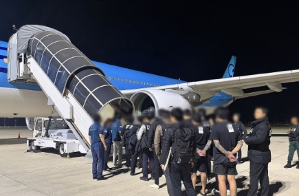 캄보디아에서 스캠(사기) 등에 가담한 한국인 범죄 조직원 73명이 23일 오전 전세기를 타고 국내로 강제 송환됐다. 이들을 태운 대한항공 KE9690편은 캄보디아 프놈펜에서 출발해 이날 오전 9시 41분께 인천국제공항에 착륙했다. 해외에서 한국 범죄자들을 전세기로 집단 송환한 사례는 이번이 네 번째다. 단일 국가 기준 역대 최대 규모이기도 하다. 이미 체포영장이 발부됐던 송환 대상자들은 전세기에 타자마자 기내에서 체포됐다. 국적법상 국적기 내부도 대한민국 영토여서 체포영장을 집행할 수 있다. 이들은 전세기에서 내리자마자 경찰관서 등으로 압송돼 조사받게 된다. 피의자들은 한국인 869명에게서 약 486억원을 가로챈 혐의를 받는다. 70명은 로맨스 스캠(연애 빙자 사기)이나 투자 리딩방 운영 등 스캠 범죄 혐의를, 3명은 인질강도와 도박 등 혐의를 받는다. 가상 인물로 위장하는 딥페이크 기술을 활용해 104명에게 약 120억원을 편취한 로맨스 스캠 부부 사기단도 포함됐다. 이들은 성형..