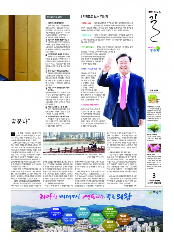 자연 품은 첨단 도시 의왕, 명품 도시 도약한다. 첨단 '콤팩트시티' 지향하는 김성제 의왕시장