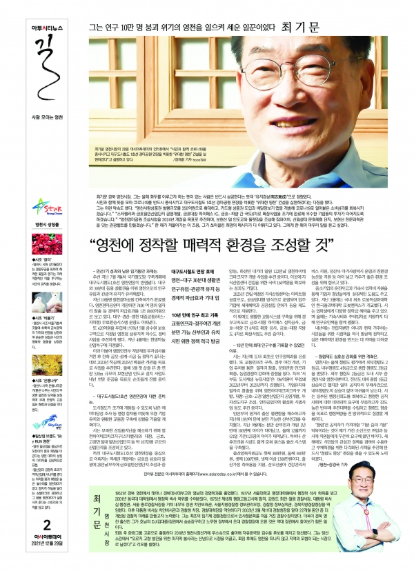 "우리는 젊어지고 있다" 사람이 모이는 스타도시 영천 영천시가 인구 11만명이라는 목표를 달성하고자 행정력을 집중한 결과 10년만에 최대 인구를 기록하는 성과를 거뒀다.