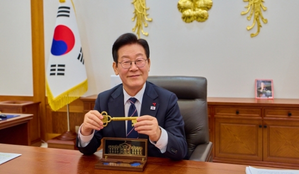 이재명 대통령이 30일 도널드 트럼프 미국 대통령이 선물한 '백악관 황금열쇠'를 개봉하는 모습을 엑스(X·구 트위터) 등에 공개했다. 이 대통령은 황금열쇠를 들고 있는 사진과 함께 "혹시 백악관 열쇠일까요"라며 "다음에 방문했을 때 자리에 안 계시면 이 열쇠로 문을 열고 들어가도 될는지"라고 썼다. 이 대통령은 "소통의 의지가 듬뿍 담긴 황금열쇠가 열어줄 더욱 굳건한 한미동맹을 기원한다"며 "변함없는 우정과 깊은 신뢰에 늘 감사드린다"고 말했다. 트럼프 대통령은 지난 16일 강경화 주미대사와 환담하며 이 대통령 선물인 '백악관 황금열쇠'를 전달했고, 강훈식 대통령실 비서실장이 지난 24일 SNS에 해당 사실을 알렸다. 강 실장은 "(트럼프 대통령이) 지난 10월 방한 당시 매우 귀한 선물을 받아 특별한 선물을 전하고자 한다"며 "총 5개로 제작된 백악관 황금열쇠 중 마지막 남은 1개를 우리 대통령에게 보내왔다"고 소개했다. 이어 "현재까지 베냐민 네타냐후 이스라엘 총리, 아소 다로..