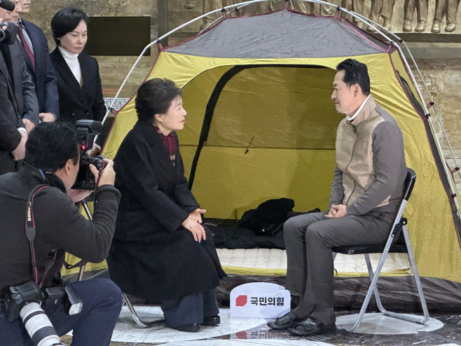 이준석 개혁신당 대표가 21일 단식 7일 차에 접어든 장동혁 국민의힘 대표를 예방해 단식 중단과 건강 회복을 촉구하며, 야권 공조의 중심 역할을 계속해 달라는 메시지를 전했다. 이 대표는 이날 오전 국회 로텐더홀 농성장을 찾아 "장기 투쟁이 되지 않을까 하는 우려와 함께 대표님이 몸을 최대한 추스르는 것이 어떠냐는 생각"이라며 "당장 양당이 공조를 강화하려면 대표님이 지휘관으로서 역할을 해주셔야 한다"고 말했다. 이 대표는 "어제부터 건강 상태가 너무 안 좋으시다는 얘기를 듣고 걱정이 됐다"며 "지금 대표님의 결기를 믿지 못하는 사람이 어디 있느냐. 건강 먼저 챙기시라. 가장 안타까운 건 이 와중에서도 (여당이) 어떻게든 물타기 하려고 하고, (쌍특검법을) 받지 않으려고 하는 모습 때문에 마음이 아프다"이라고 말했다. 이 대표는 장 대표의 단식 돌입과 건강 상태 악화 소식을 듣고 이날 오전 해외 출장에서 조기 귀국했다. 이 대표의 이야기를 들으며 고개를 끄덕이던 장 대표는 "야당..