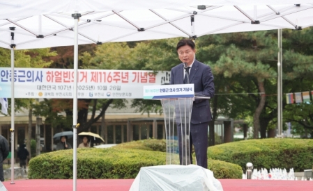 경기 부천시가 올해로 116주년을 맞는 안중근 의사의 의거를 기리는 뜻깊은 행사를 열었다. 27일 부천시에 따르면 시는 전날 원미구 소재 안중근공원에서 열린 '안중근 의사 의거 제116주년 기념식'을 개최했다. 이번 행사는 광복 80주년을 맞아 1909년 하얼빈에서 조국의 자주독립을 위해 의거를 단행한 안중근 의사 애국정신과 평화사상을 기리고 그 뜻을 시민과 함께 계승하기 위해 마련됐다. 부천시는 2009년 10월 26일 중국 하얼빈에서 반입된 안중근 의사 동상을 유치해 '안중근공원'을 조성했으며, 현재 역사·문화·교육 공간으...