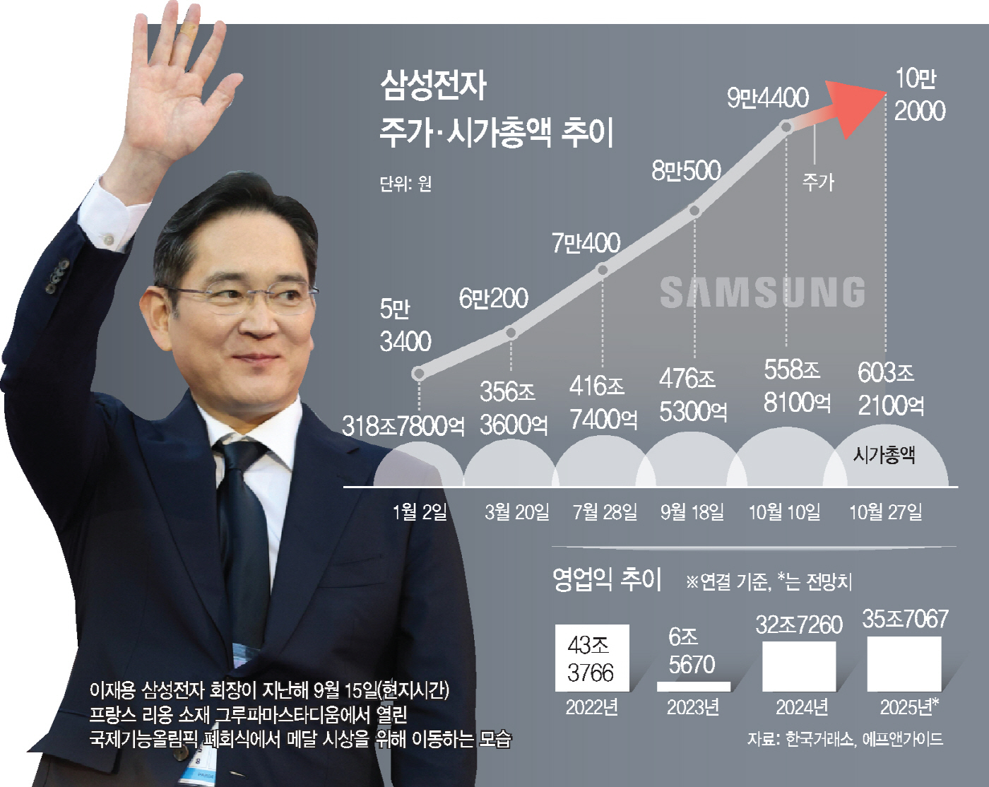 JY 취임 3년된 날 ‘10만전자·시총 600兆’… 삼성..