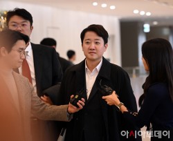 이준석 개혁신당 대표가 윤석열 전 대통령의 공천개입 의혹과 관련 조사를 받기 위해 21일 오전 서울 종로구 KT광화문빌딩 웨스트에 마련된 민중기 특별검사팀 사무실로 출석해 취재진 질문을 받고 있다.
