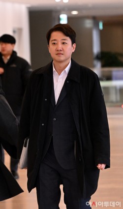 이준석 개혁신당 대표가 윤석열 전 대통령의 공천개입 의혹과 관련 조사를 받기 위해 21일 오전 서울 종로구 KT광화문빌딩 웨스트에 마련된 민중기 특별검사팀 사무실로 출석하고 있다.