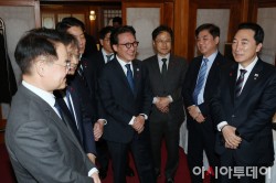 윤호중 행정안전부 장관이 24일 오전 서울 종로구 정부서울청사에서 열린 2025년 중앙지방정책협의회에 참석해 중앙지방행정 관계자들과 인사하고 있다.