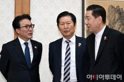 김민석 국무총리, 정청래 더불어민주당 대표, 김병기 더불어민주당 원내대표가 21일 서울 종로구 국무총리공관에서 열린 제5차 고위당정협의회에 앞서 대화를 나누고 있다. 이날 고위당정협의회에서는 부동산 대책, 대전·충남 통합 현안, 기업회생절차에 들어간 홈플러스 정상화 방안 등이 핵심 의제로 다뤄질 예정이다.