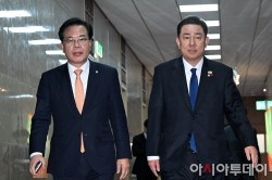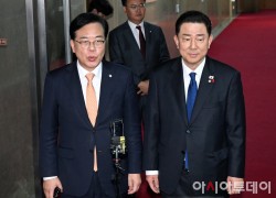 [포토] 국회의장 주재 여야 원내대표 회동 마친 김병기·송언석