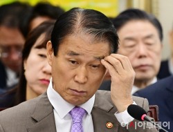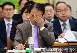 권오을 국가보훈부 장관이 28일 국회에서 열린 정무위원회의 국가보훈부, 국무조정실 등에 대한 종합감사에 출석해 피곤한 듯 얼굴을 감싸고 있다.