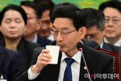 윤창렬 국무조정실장이 28일 국회에서 열린 정무위원회의 국가보훈부, 국무조정실 등에 대한 종합감사에서 물을 마시고 있다.