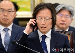 주병기 공정거래위원장이 28일 국회에서 열린 정무위원회의 국가보훈부, 국무조정실 등에 대한 종합감사에 출석해 시작 전 전화통화를 하고 있다.