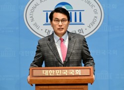 이성권 의원을 비롯한 국민의힘 초·재선 의원들이 3일 국회 소통관에서 열린 비상계엄 1년 성찰과 반성 기자회견에 참석하고 있다.