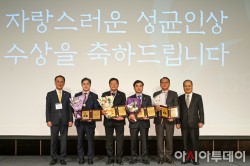 15일 오후 서울 광진구 워커힐호텔 워커홀에서 열린 성균관대학교 총동창회 2026년 신년인사회에서 특별공로상 수상자들이 기념촬영을 하고 있다. (왼쪽 두 번째부터) 수상자인 최봉회 북미주연합동문회 회장, 김효섭 전 아시아연합동문회 회장. /정재훈 기자
