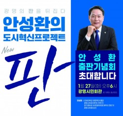 광명시장 선거를 향한 안성환 광명시의원의 행보가 본격적인 궤도에 올랐다. 안 의원은 오는 27일 오후 6시 광명시민회관에서 출판기념회 『판 : 안성환의 도시혁신 프로젝트』(이하 『판』)를 개최한다. 이번 출판기념회는 사실상 광명시장 출마를 향한 정치적 출정식 성격으로, 지역 정치권의 이목이 집중되고 있다.『판』은 광명시의회 의장 출신이자 3선 시의원인 안성환이 그간의 의정 경험을 토대로 정리한 도시 비전서다. 단순한 정책 제안집을 넘어, 차기..