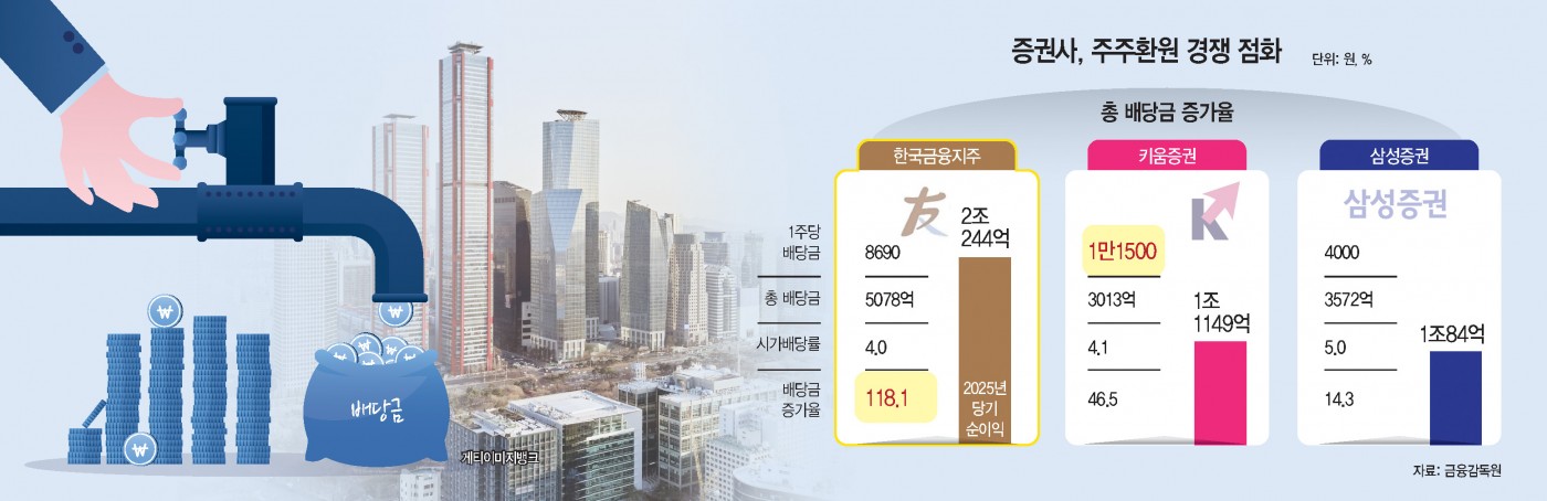 호실적 쓴 증권사들 ‘통큰 배당’… 한국금융지주 ‘증가율..