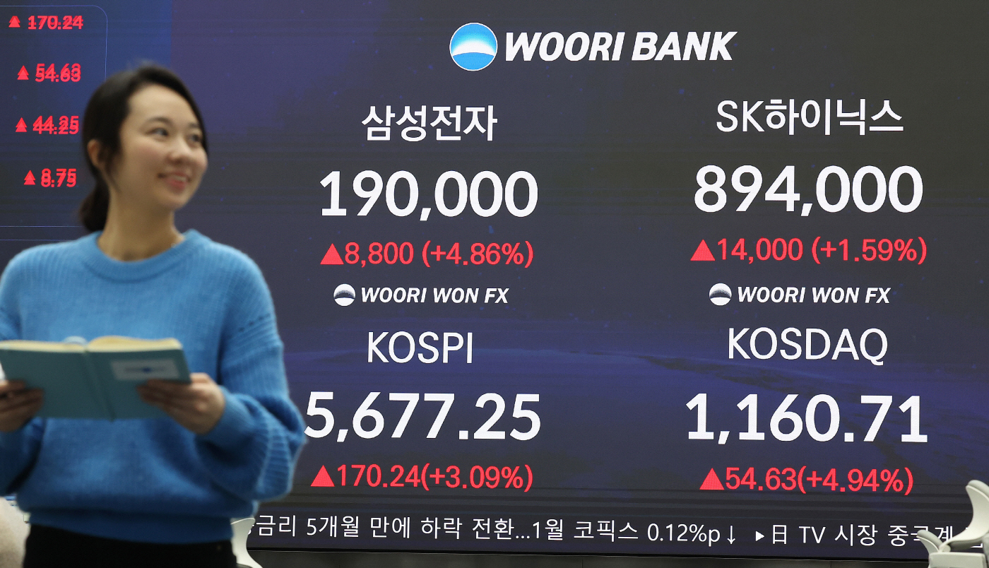 코스피가 간밤 뉴욕증시의 3대 주가지수가 강세에 힘입어 상승 출발했다.23일 한국거래소에 따르면 코스피는 전 거래일(4952.53)보다31.55포인트(0.64%) 상승한 4984.08에 개장했다.코스피 시가총액 상위 10개 종목 가운데 삼성전자(1.64%), 삼성전자우(0.99%), 삼성바이오로직스(1.18%), HD현대중공업(3.26%), 두산에너빌리티(1.22%) 등은 상승세다. 반면 SK하이닉스(-1.32%), 현대차(-0.95%), L..