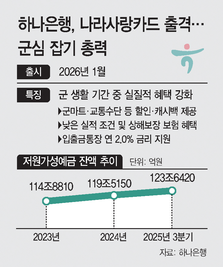 ‘나라사랑카드’ 공 들이는 하나은행…저원가성 예금·신규..