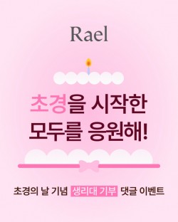 라엘은 '초경의 날(10월 20일)'을 맞아 26일까지 라엘 공식 인스타그램에서 생리대 기부 캠페인을 진행한다고 20일 밝혔다.초경의 날은 매년 10월 20일로 대한산부인과의사회가 초경에 대한 사회적 인식을 개선하고 여성 건강의 소중함을 알리기 위해 2010년 제정했다. 라엘은 첫 월경을 맞이한 소녀들을 응원하고 취약계층 아이들의 건강한 월경을 위해 실질적 도움을 제공하고자 이번 캠페인을 마련했다.라엘 공식 인스타그램의 초경의 날 기부 캠페인..