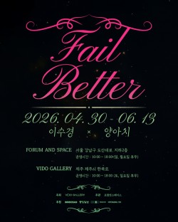 제주 비도갤러리와 서울 포럼앤스페이스가 공동으로 기획한 2인전 ‘Fail Better(정교하게 어긋나기)’가 오는 4월 30일부터 6월 13일까지 열린다.이번 전시는 이수경과 양아치 두 작가가 참여해 생성형 AI와 실시간 데이터 등 기술 환경과 예술의 접점을 탐구하는 작업을 선보인다. 특히 기술의 불완전성과 오류에서 비롯되는 시각적·개념적 가능성에 주목한 점이 특징이다.이수경 작가는 조각, 설치, 드로잉, 회화, 영상, 퍼포먼스 등 다양한 매체..