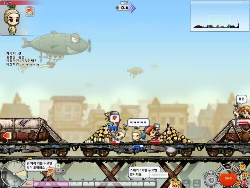 | 스페이스바로 슈팅의 세기를 조작하는 법은 포트리스와 동일하다. 다만 누르는 시간에 따라 거리를 알려주는 동선이 존재해 상대방을 맞히는데 매우 편리하다. |