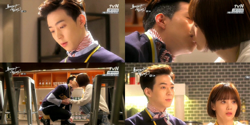 이어 우영은 깨진 컵을 주우려는 희재를 말리다 손을 잡게 됐고, 묘한 공기가 흐르는 가운데 희재는 다시 딸꾹질을 시작했다. 그런 희재를 사랑스러운 눈길로 보던 우영은 “그냥 짧게 할게요”라는 한 마디와 함께 희재에게 입을 맞췄다.