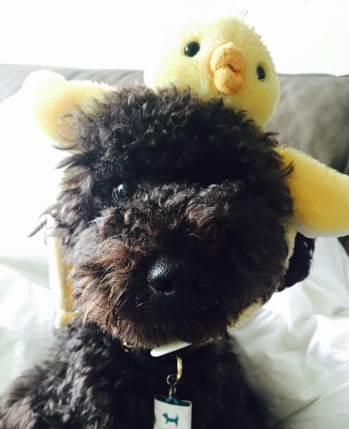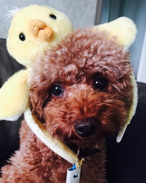 사진속 꼼데와 가르송은 오리 머리띠를하고 똑같은 표정을 짓고있는 귀여운 모습이다. 키는 4차원 이미지답게 반려동물의 이름을 재치있게 지었다.