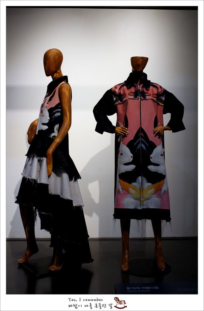 직물의 패턴을 만들고, 다시 그 자체가 작품이 된다. 미술과 패션의 조합으로 한글의 아름다움을 재현하였다.