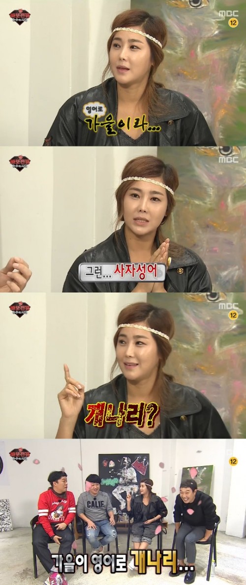 솔비는 가을이 영어로 무엇이냐는 질문에 자신있게 "개나리"라고 답해 웃음을 자아냈다.