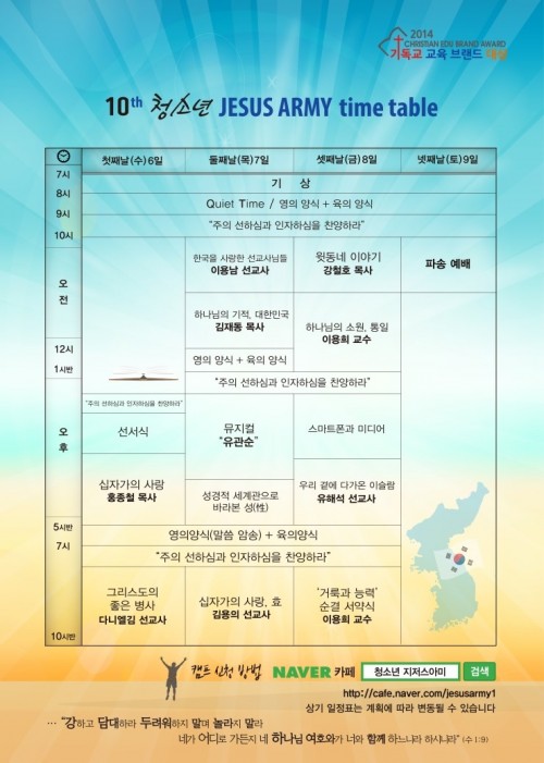 수련회 신청은 청소년 지저스아미 까페에서 온라인 접수한다. 문의는 cafe.naver.com/jesusarmy1