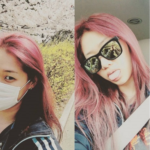공개된 사진 속에는 마스크와 선글라스를 쓴 현쥬니카 카메라 앞에서 포즈를 취하고 있다. 특히 현쥬니는 핑크색 머리로 스타일리시한 면모를 과시했다.