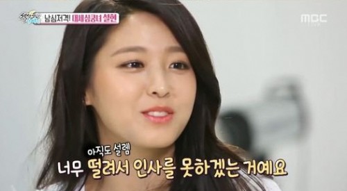 이날 설현은 이상형인 송중기를 언급했다. 설현은 "(송중기를) 시상식에서 뵌 적 있었다"며 "주차장에서 선배님이 게시길래 인사하려고 옆에까지 갔다. 도저히 떨려서 못하겠더라"고 털어놨다.
