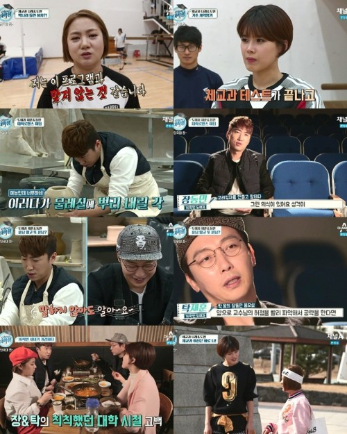23일 방송된 채널A '오늘부터 대학생'에서는 단국대학교 도예과에 입학한 탁재훈·장동민과 체육교육과 학생이 된 박나래·장도연의 신입생 적응기가 그려졌다.
