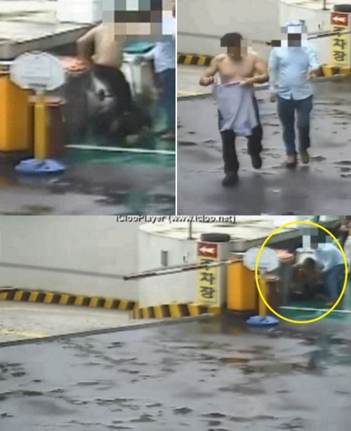 공개된 영상에는 체격이 건장한 두 남성이 경비원 한 사람을 붙들고 폭력을 휘두르는 모습이 고스란히 담겨있다.